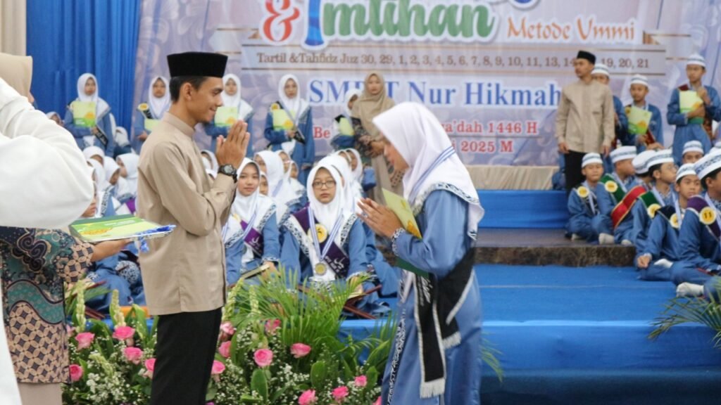 Ustadz Agusriwarman menyatakan syukur, SMPIT Nur Hikmah dinobatkan sebagai sekolah model Alquran Metode Ummi 2025. “Tentu Ini adalah sebuah apresiasi yang luar biasa bagi SMPIT Nur Hikmah dalam usianya yang menuju 9 tahun,” kata Ustadz Agusriwarman. Piagam penghargaan langsung diserahkan oleh Ustadz Ahmad Yusuf M.Si kepada Ustadz Agusriwarman. “Barakallah, sukses terus buat SMPIT Nur Hikmah,” ujar Ustadz Ahmad Yusuf.