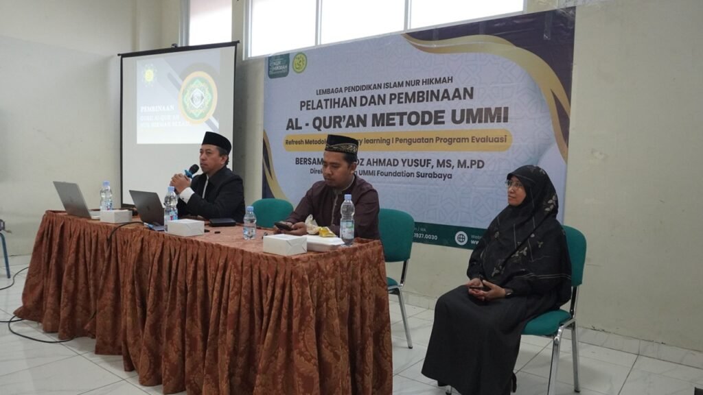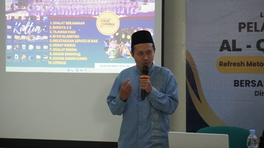 Dalam semangat meningkatkan kualitas pembelajaran Al-Qur’an, Yayasan Wakaf Nur Hikmah Bekasi menyelenggarakan Pelatihan dan Pembinaan Guru Al-Qur’an secara kolosal selama dua hari, yakni pada tanggal 25–26 Juli 2025. Bertempat di aula bawah SMPIT Nur Hikmah, kegiatan ini diikuti oleh seluruh guru Al-Qur’an dari unit KBTK, SDIT, SMPIT, dan SMAIT Nur Hikmah dalam satu gerak sinergis lintas jenjang.