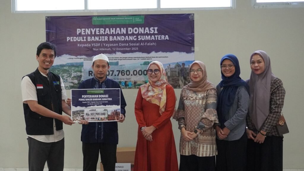 Yayasan Wakaf Nur Hikmah turut ambil bagian dalam membantu saudara-saudara yang terdampak musibah di wilayah Sumatera. Alhamdulillah, melalui gerakan kepedulian bersama, berhasil dihimpun dana sebesar Rp112.200.000 yang berasal dari sumbangan seluruh elemen keluarga besar Nur Hikmah, mulai dari yayasan, para guru, hingga orang tua siswa dari jenjang KBTK, SDIT, SMPIT, dan SMAIT Nur Hikmah.