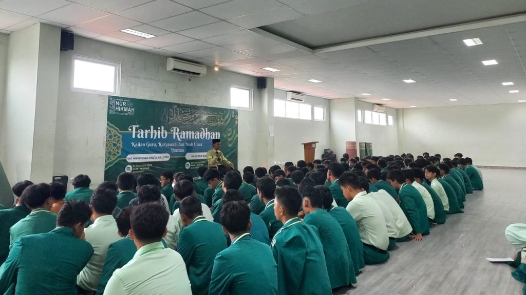 Bekasi, 26 Februari 2025 – SMPIT Nur Hikmah kembali menggelar Tarhib Ramadan, sebuah rangkaian kegiatan yang bertujuan untuk menyambut bulan suci dengan penuh kegembiraan dan persiapan matang. Sejak pagi, seluruh siswa telah mendapatkan pembekalan spiritual melalui kajian Fiqh Puasa yang disampaikan oleh Ustadz Gunawan, B.A., selaku Wakil Kepala Sekolah Bidang Diniyah. Dalam sesi ini, para siswa tidak hanya belajar tentang hukum-hukum puasa, tetapi juga memahami makna Ramadan sebagai bulan tarbiyah yang mengajarkan kesabaran, keikhlasan, serta kepedulian terhadap sesama.